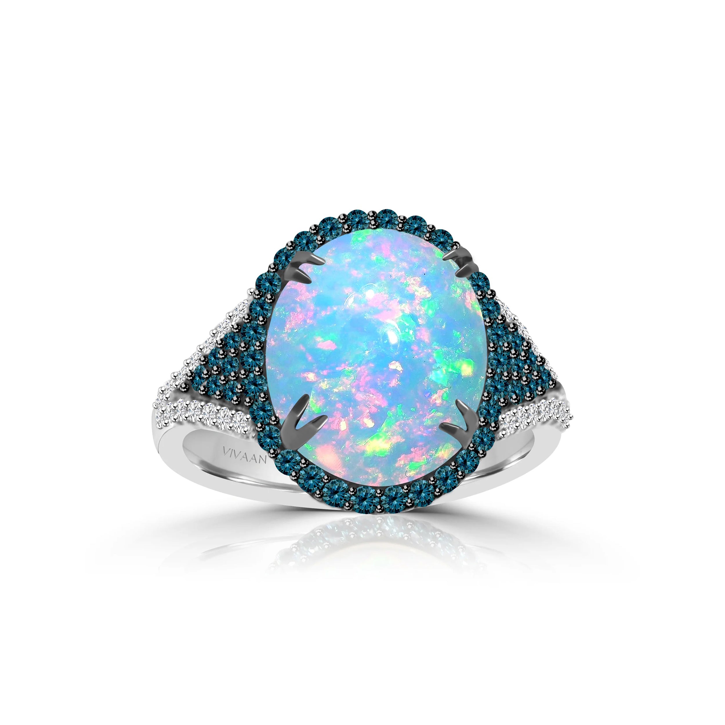 Set in luxurious 18K white gold, the *OPALINE* ring is a timeless piece that balances delicate charm with radiant sophistication.