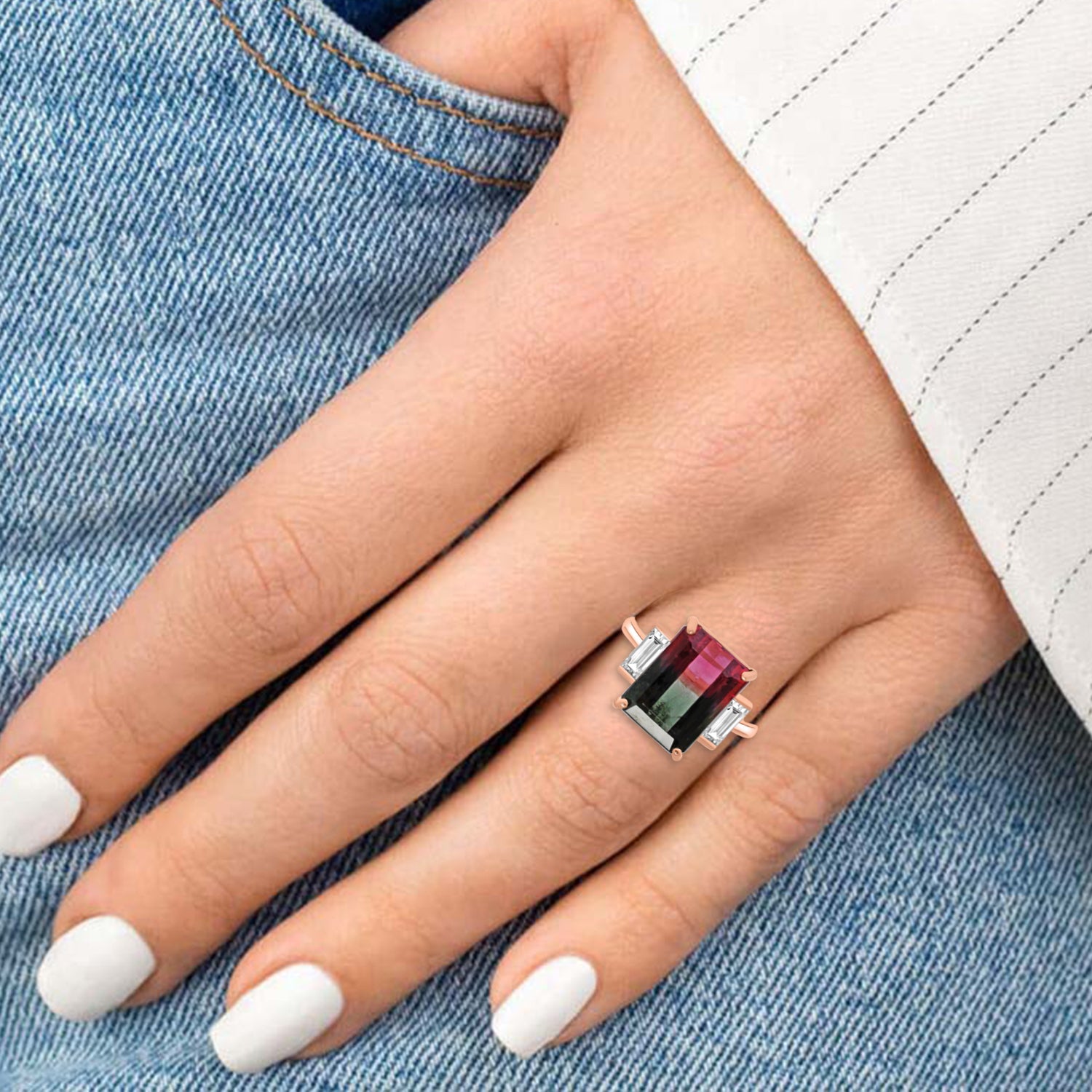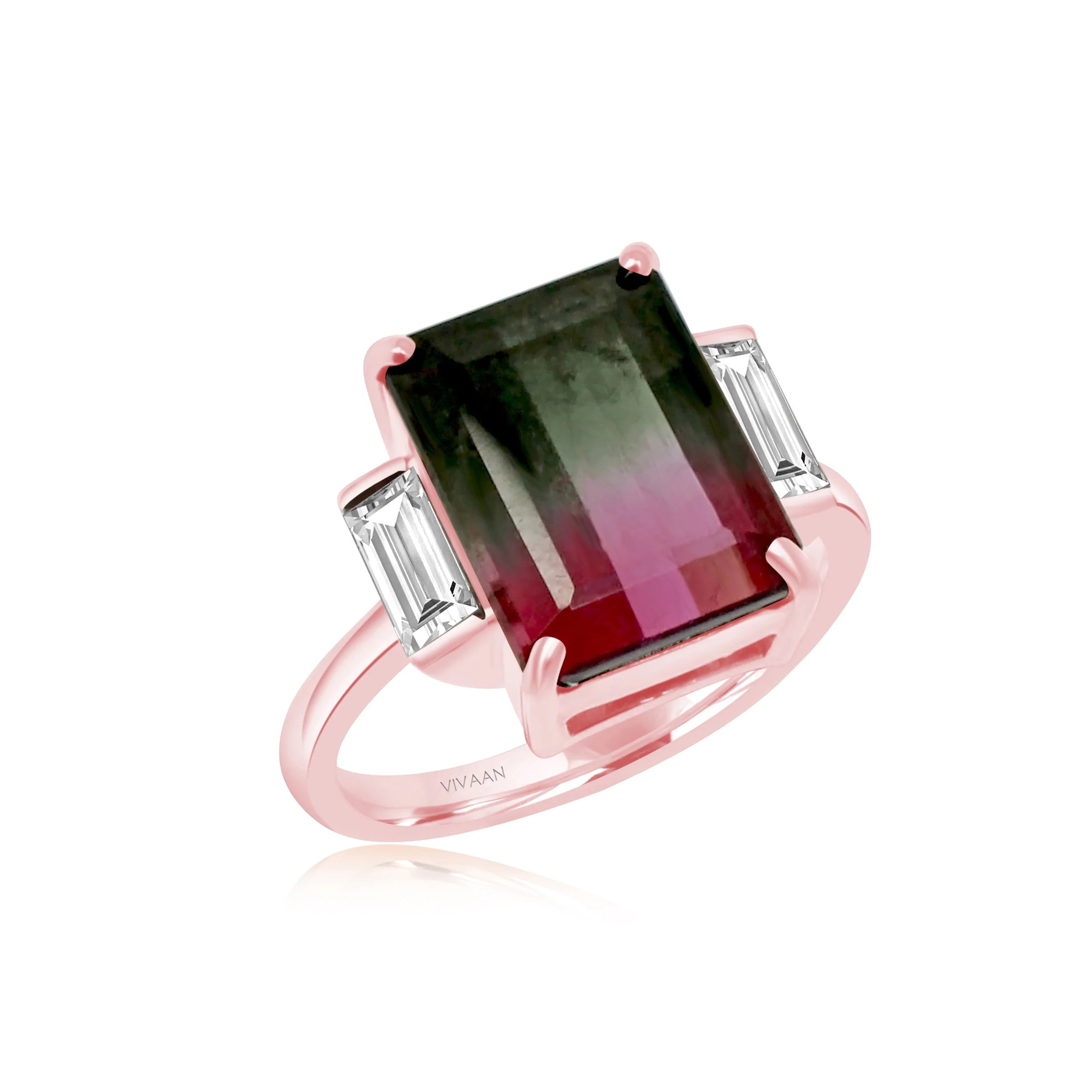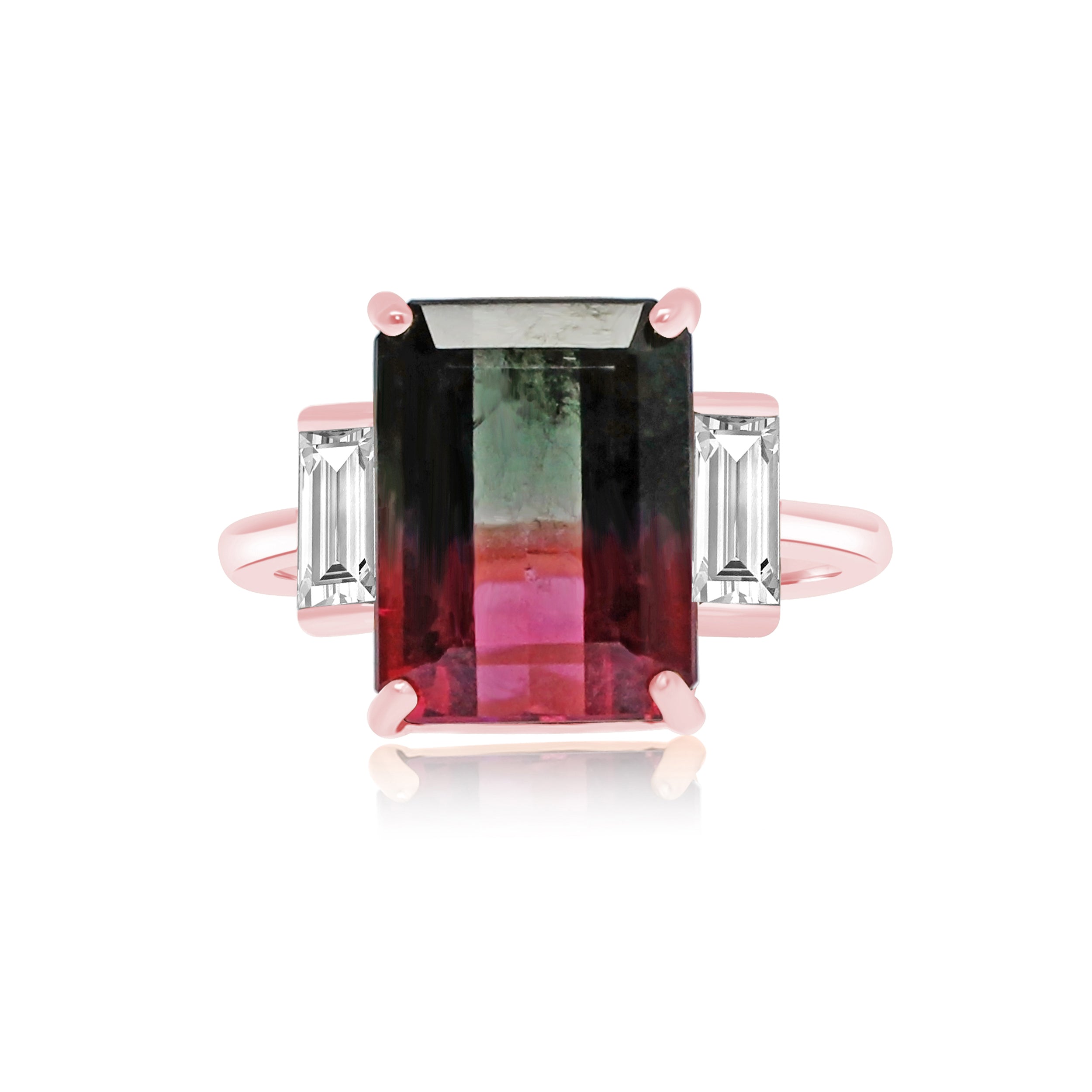 This luxuriously crafted CHEER watermelon tourmaline ring is the perfect way to add timeless elegance to any casual look. Boasting diamond baguettes accents and 18k rose gold, the comfort fit ensures lasting comfort while the sophisticated aesthetic brings a sense of refined luxury.
