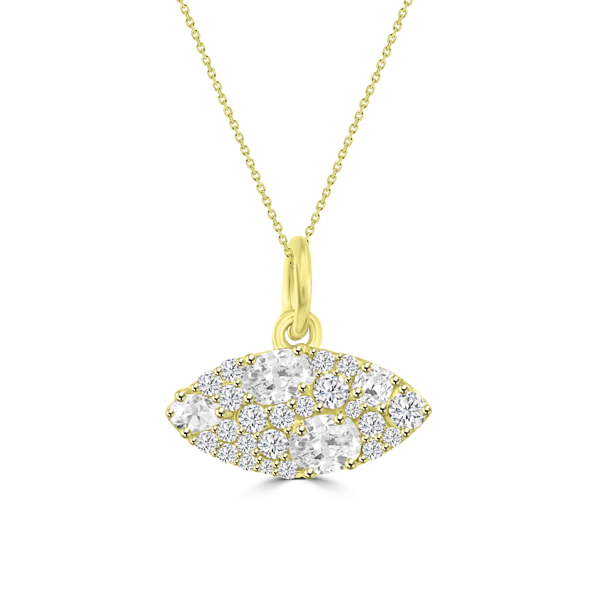 Behold the Ethereal Elegance pendant, an oval-shaped masterpiece that exudes celestial grace and sophistication. Crafted with the utmost care in gleaming yellow gold and adorned with exquisite Old Mine and European Cut Diamonds, this pendant is a testament to your inner luminary, empowering you to shine brightly wherever your journey may take you. This pendant is a catalyst for change. Wear it as a reminder of your limitless potential, each Old Mine and European Cut Diamond symbolizing the inner brilliance that lies within.
