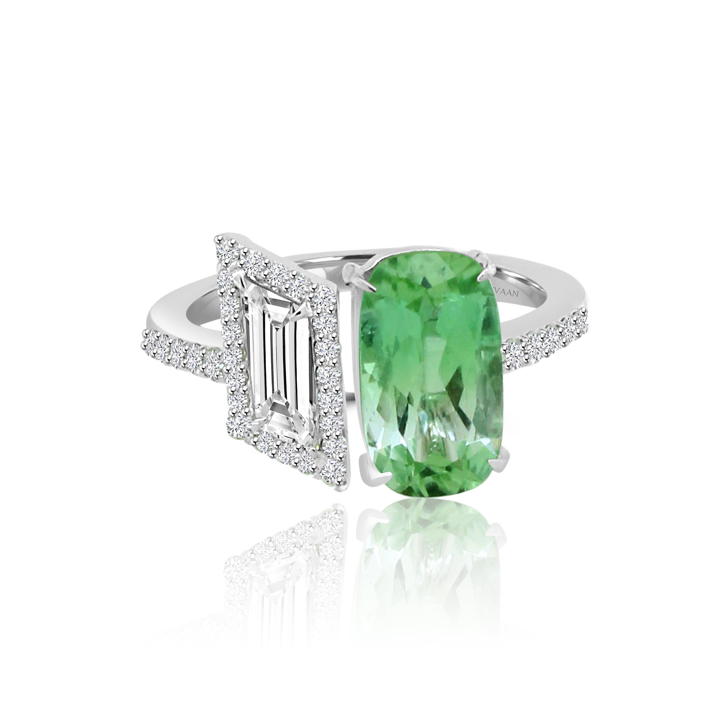 Get fancy with OPHELIA, the tourmaline ring with a dazzling diamond in 18K white gold. Perfect for any occasion, this sparkler is sure to turn heads and wow onlookers. So don't be modest, it's time to show off your style with some serious bling!