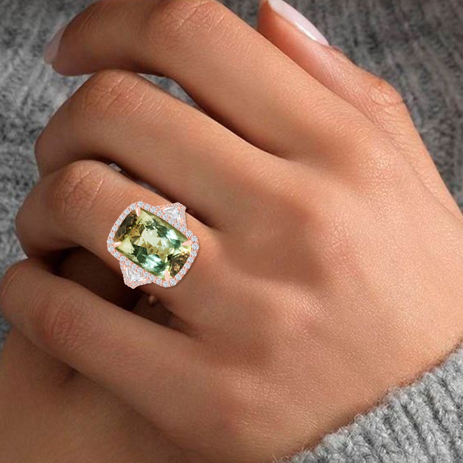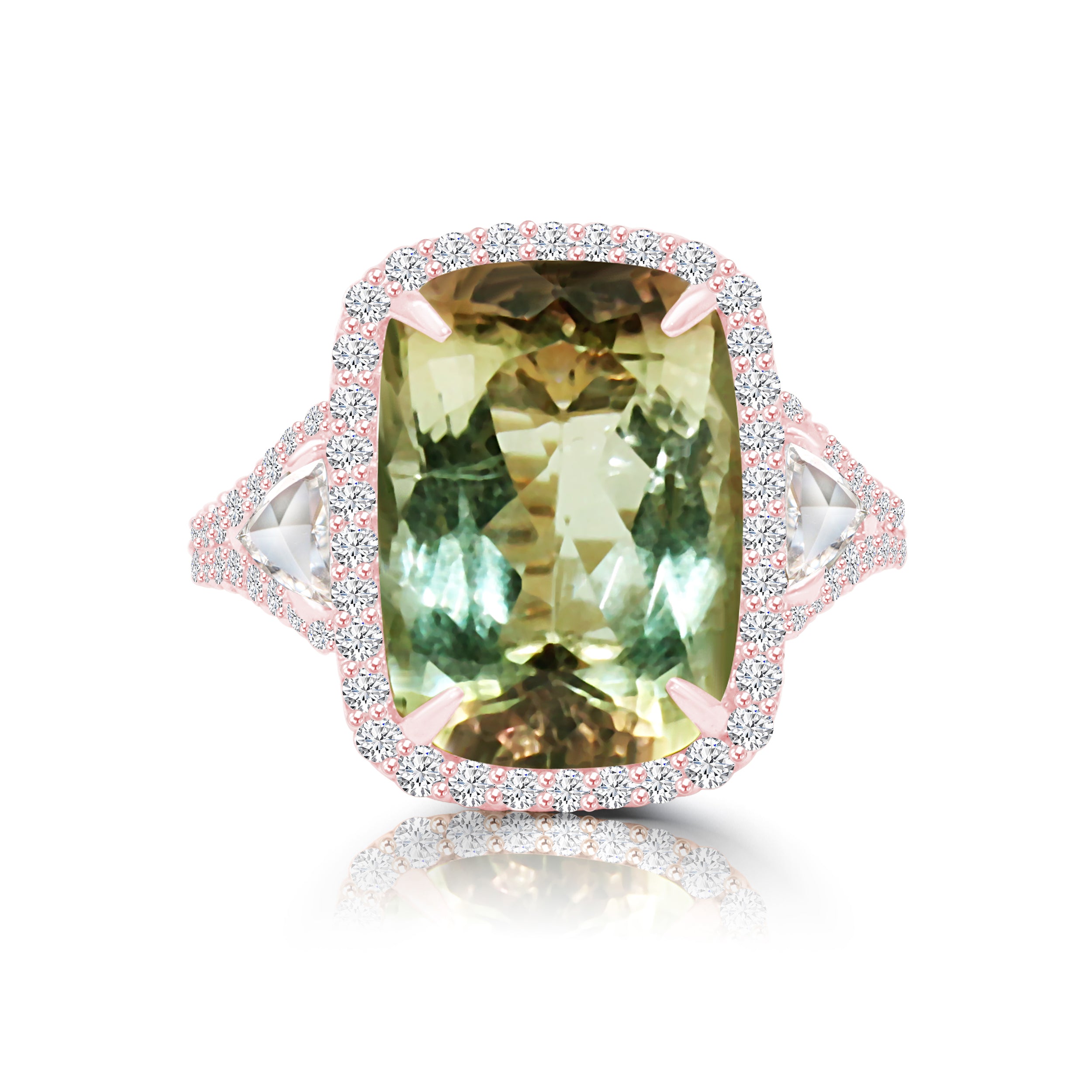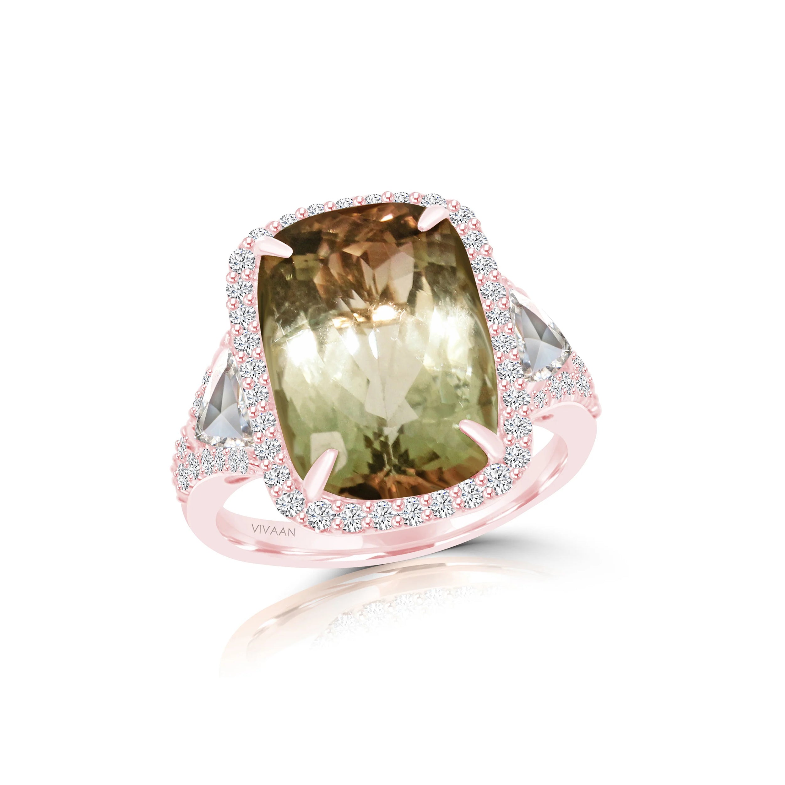 Fiery green tourmaline ring accented with rosecut diamonds and brilliant diamonds set in 18k Rose Gold.