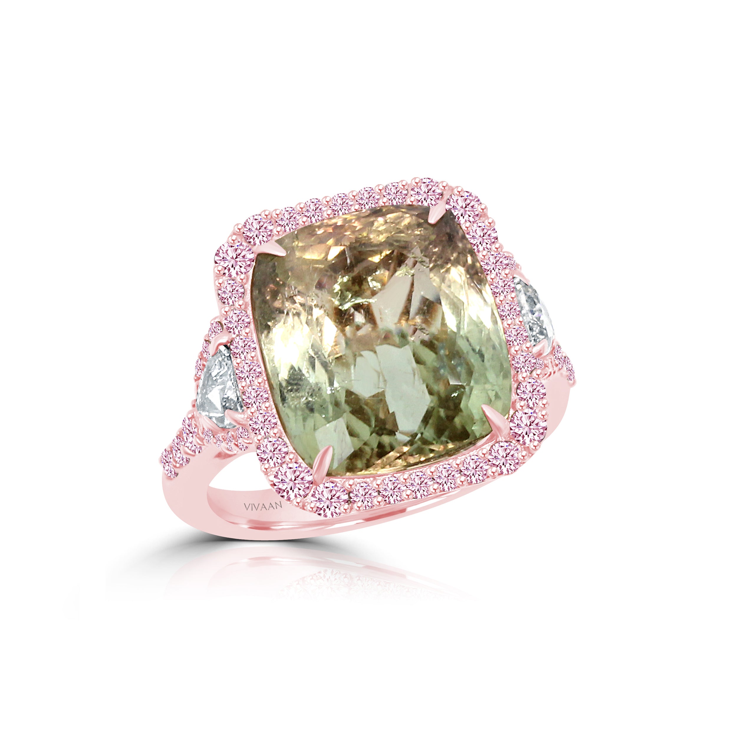 This exquisite PERIDOT Tourmaline ring is crafted with captivating Rose Cut and Brilliant Diamonds in 18K luxurious Yellow Gold, perfect for special occasions. Delicate and timeless, this ring offers the ultimate in sophisticated luxury.