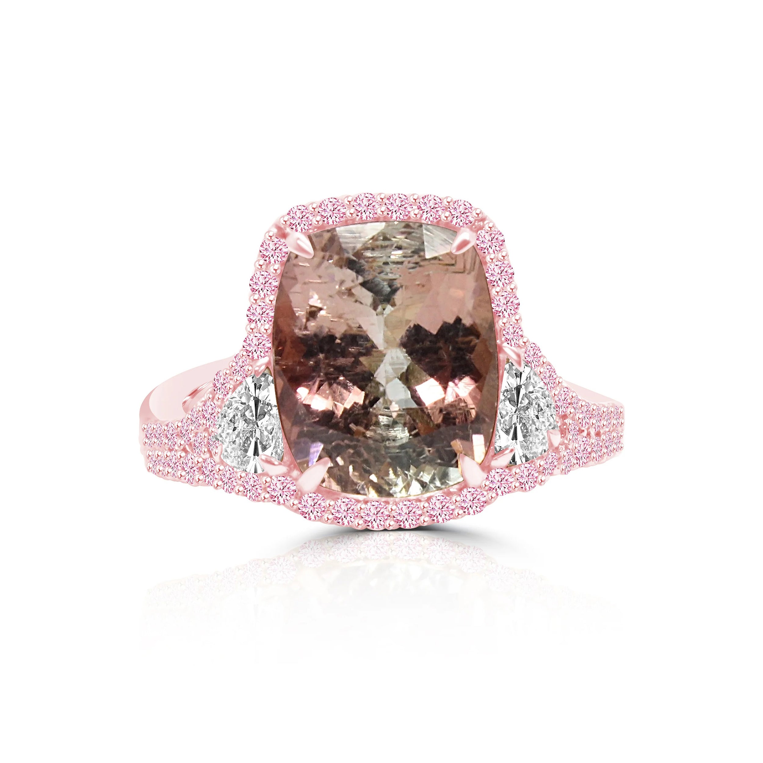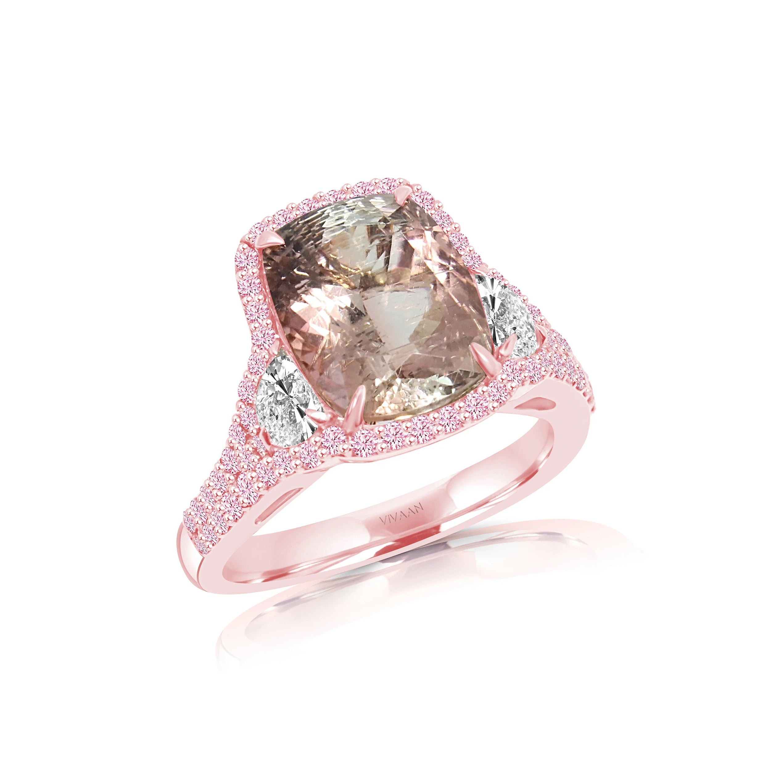 Discover the enchanting allure of this exquisite tourmaline ring, adorned with natural pink diamonds and fancy-shaped diamonds. The vibrant tourmaline is the centerpiece, surrounded by a dazzling array of pink diamonds that enhance its elegance. Carefully placed fancy-shaped diamonds add a unique sparkle, making this ring a true statement of sophistication and beauty. Perfect for special occasions or as a timeless addition to your jewelry collection, this piece radiates luxury and grace in every detail.