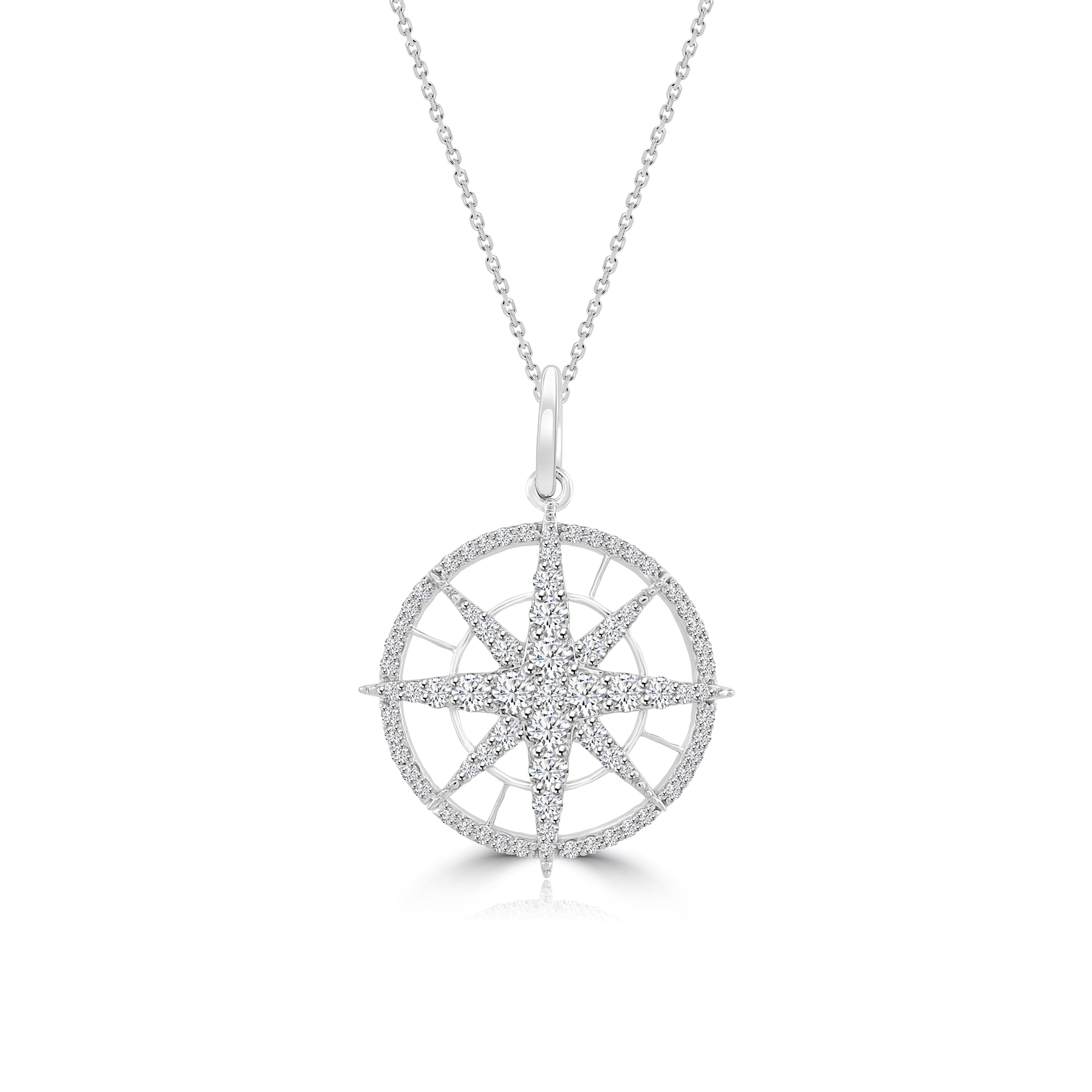 Inspired by direction and inner light, the CLARITY pendant is a striking symbol of guidance and elegance. At its center, four pear-shaped rose-cut diamonds form a radiant bloom, representing clarity in all directions. Brilliant-cut diamonds accent the delicate spikes and outer circle, creating a refined compass motif that shimmers with purpose. Set in luminous 18K white gold, this pendant is a timeless expression of balance, brilliance, and beautifully guided intention.