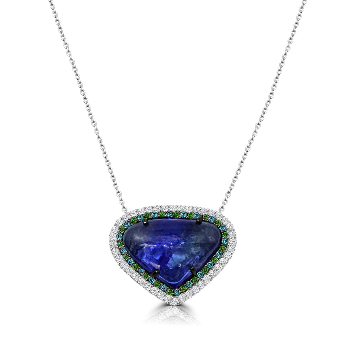 Accentuate your style with MERAKI! This 16" necklace features a stunning Tanzanite set in 18K white gold and adorned with blue diamonds and brilliant diamonds for a look that is out of this world. Dare to be bold and make a statement!